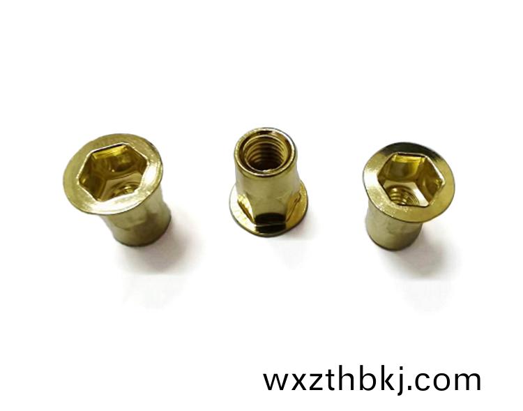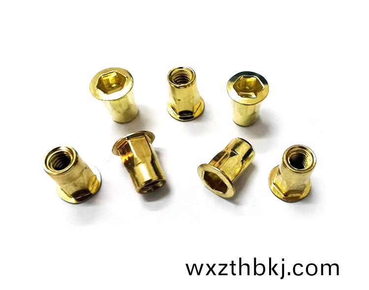 産品(pin)名稱(cheng):平頭(tou)半(ban)六角通(tong)孔(kong)拉鉚(liu)螺母 銅(tong)材(cai)質