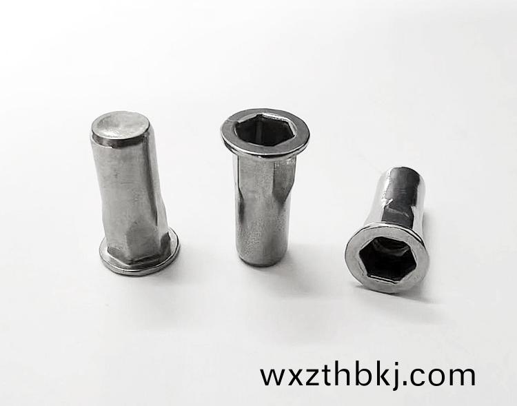 産(chan)品名(ming)稱:平(ping)頭半六(liu)角盲孔拉(la)鉚(liu)螺(luo)母(mu) 不(bu)鏽(xiu)鋼(gang)