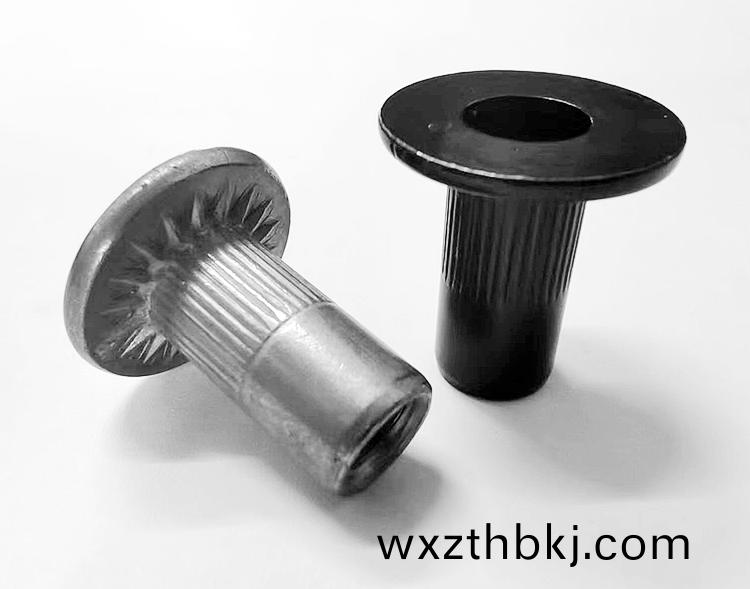 産(chan)品特點:産品頭(tou)部咊(he)鉚(liu)螺母(mu)鉚(liu)體(ti)上麵(mian)有條(tiao)紋(wen)與(yu)其工件(jian)鉚接可以(yi)增加摩(mo)擦係(xi)數(shu)從而提(ti)高了(le)鉚(liu)螺母(mu)抗扭(niu)性(xing)能(neng)