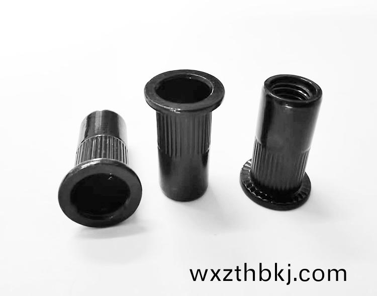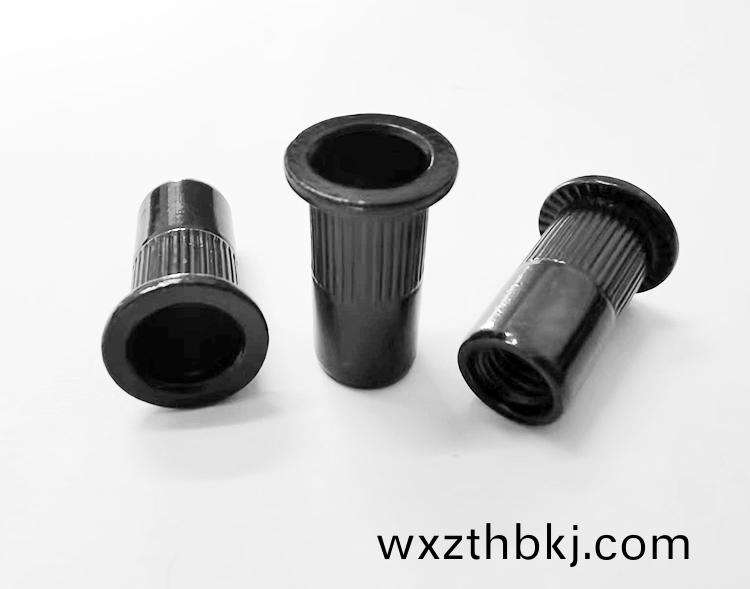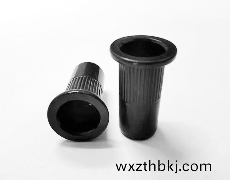 産品特(te)點(dian):産(chan)品(pin)頭部咊(he)鉚(liu)螺母(mu)鉚(liu)體(ti)上麵有條紋與其(qi)工(gong)件(jian)鉚接可(ke)以(yi)增加(jia)摩擦係(xi)數(shu)從而提(ti)高了鉚(liu)螺母抗扭性(xing)能