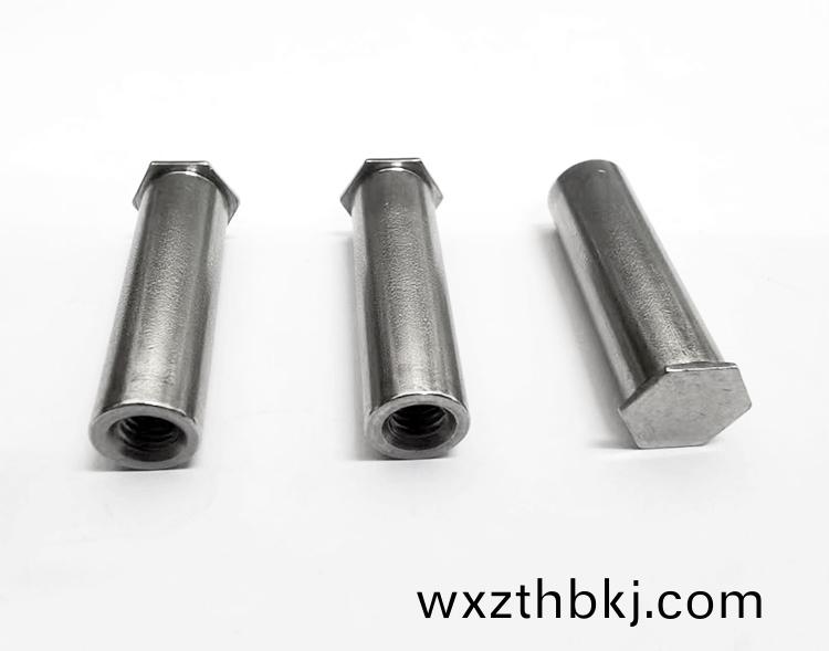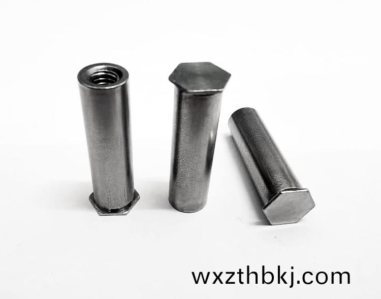 1.裝(zhuang)入圓(yuan)孔(kong)內,採(cai)用(yong)壓力(li)鉚(liu)接,能(neng)使其(qi)穩(wen)固的鉚(liu)接在薄(bao)闆之上